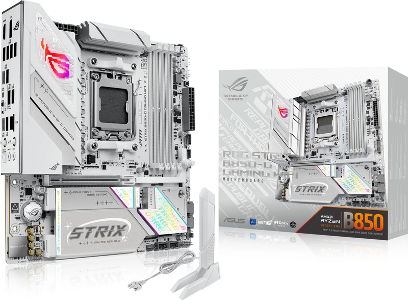 Материнская плата Материнская плата ASUS ROG STRIX B850-G GAMING WIFI, AM5, B850, 4*DDR5, 2*SATA, 4*M.2, 6*USB 3.2, 2*USB 2.0, Type-C, 2*PCIx16, DP+HDMI, ATX; 90MB1M30-M0EAY0 купить в интернет-магазине TPShop.Ru. Наличный и безналичный расчет, розничные и оптовые продажи. Самовывоз, доставка по Москве и МО, отправка во все регионы России.