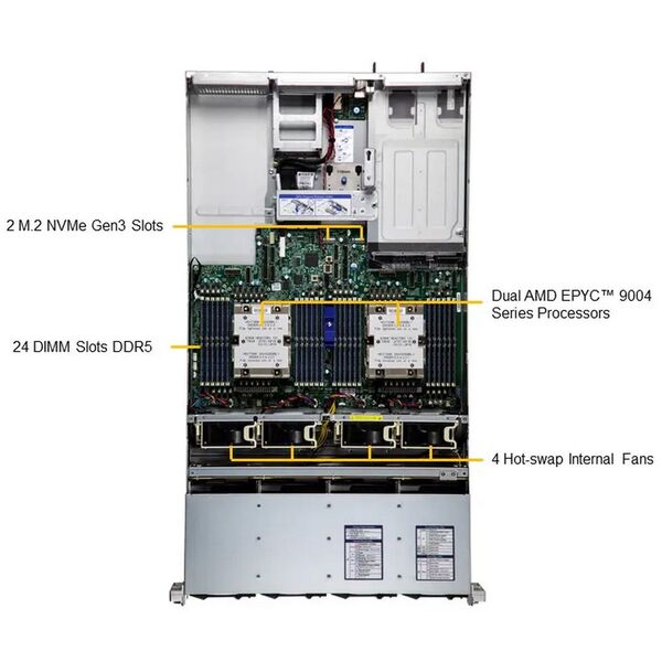 - 12x 3.5"/2.5" HotSwap NVMe/SAS/SATA (для работы требуется дополнительный контроллер, приобретается отдельно), 2x M.2 PCIe3.0 x4 NVMe M-key 2280/22110