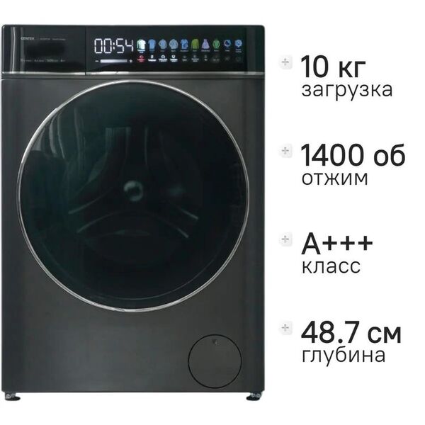 Стиральная машина с сушкой CENTEK CT-1976 серый, загрузка фронтальная 10кг, 1400 об/мин, Класс А+++