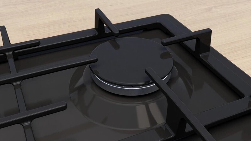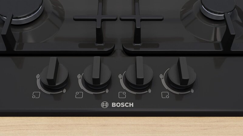 Варочная панель Serie 4, газовая варочная панель, 60см, эмаль, черный, 4 конфорки,1 конфорка повышенной мощности, составные чугунные решетки, газ-контроль, автоматический электроподжиг, сделано в Испании