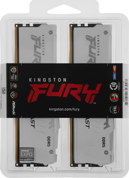 Оперативная память Kingston DDR5 DIMM FURY Beast белый EXPO RGB 32Gb (kit 2x16Gb), 6800Mhz, KF568C34BWEAK2-32 CL34, с радиатором Kingston