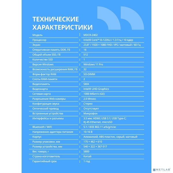 Моноблок CBR AiO-MDCR-2402 23.8" FHD IPS (i5-1235U(1.3GHz) / 16Gb DDR4 3200MHz (2slot) / 512Gb SSD PCIe /Intel UHD Graphics (support Iris Xe with dual RAM) / RJ45 / Windows 11 Pro купить в интернет-магазине TPShop.Ru. Наличный и безналичный расчет, розничные и оптовые продажи. Самовывоз, доставка по Москве и МО, отправка во все регионы России.