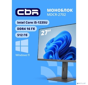 Моноблок CBR AiO-MDCR-2702 27" FHD IPS (i5-1235U(1.3GHz) / 16Gb DDR4 3200MHz (2slot) / 512Gb SSD PCIe /Intel UHD Graphics (support Iris Xe with dual RAM) / RJ45 / Windows 11 Pro