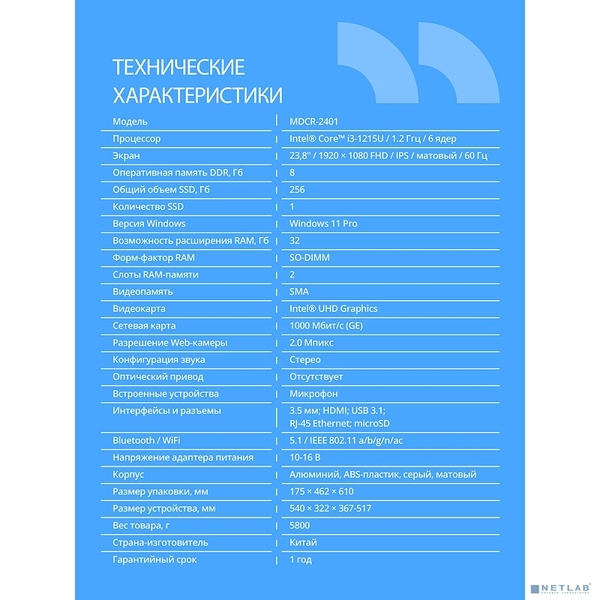 Моноблок CBR AiO-MDCR-2401 23.8" FHD IPS (i3-1215U(1.2GHz) / 8Gb DDR4 3200MHz (2slot) / 256Gb SSD PCIe /Intel UHD Graphics (support Iris Xe with dual RAM) / RJ45 / Windows 11 Pro ) купить в интернет-магазине TPShop.Ru. Наличный и безналичный расчет, розничные и оптовые продажи. Самовывоз, доставка по Москве и МО, отправка во все регионы России.