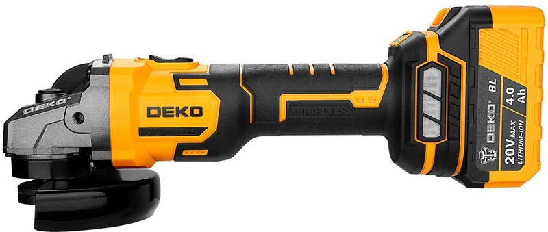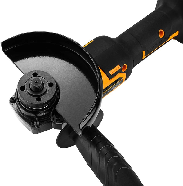 - Углошлифовальная машина бесщеточная, защитный кожух, аккумулятор, зарядное устройство, дополнительная рукоятка, фланцевый ключ, руководство по эксплуатации.