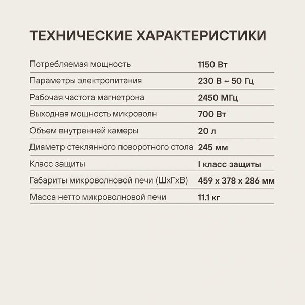 - блокировка от детей, остановка поворотного стола, память рецептов, программирование процесса приготовления, таймер