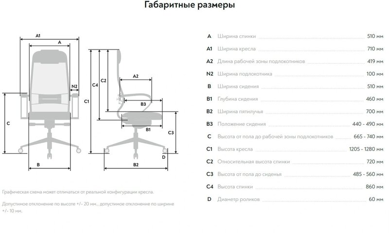 - Высота кресла / стула MAX