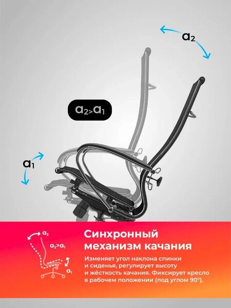 - механизм качания, поясничная поддержка, эргономичная спинка