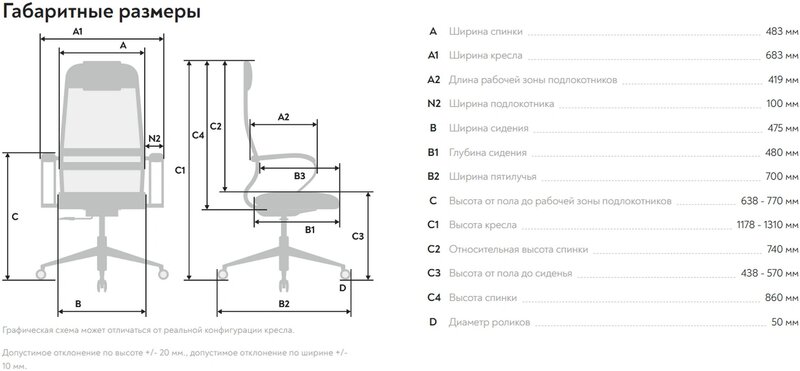 - Высота с подлокотниками MIN