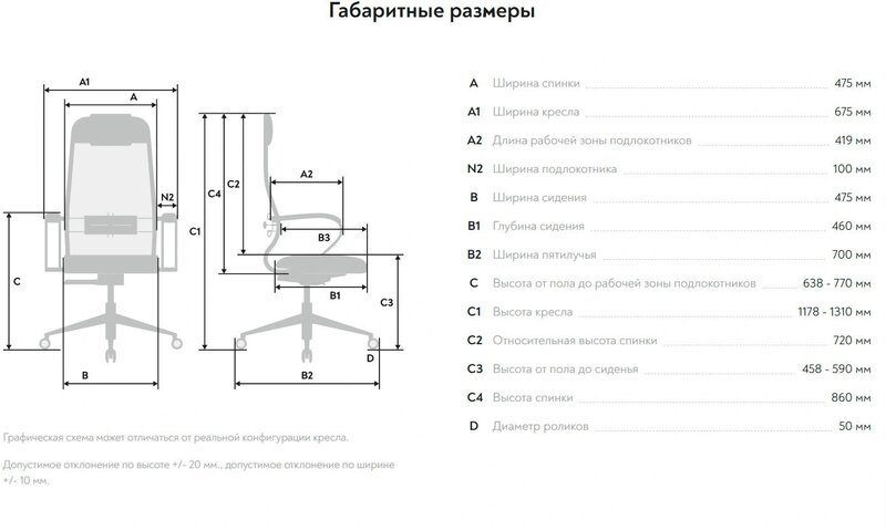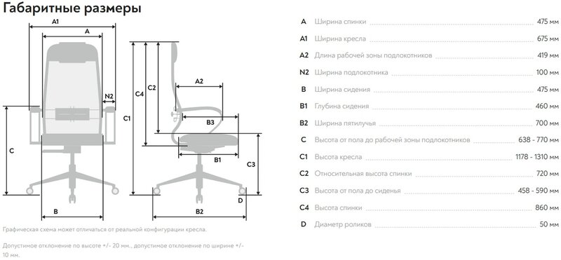 - Высота с подлокотниками MIN
