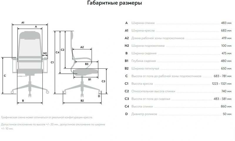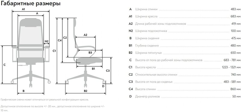 - Высота с подлокотниками MIN