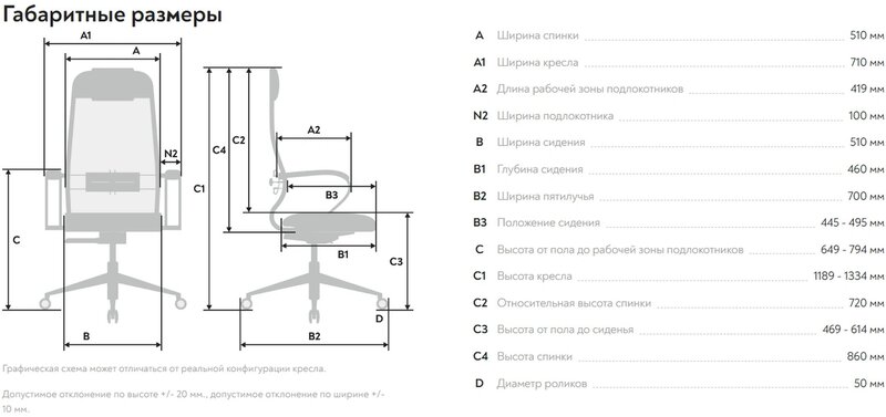 - Высота с подлокотниками MIN