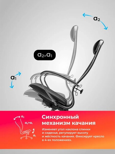 - механизм качания, поясничная поддержка, эргономичная спинка