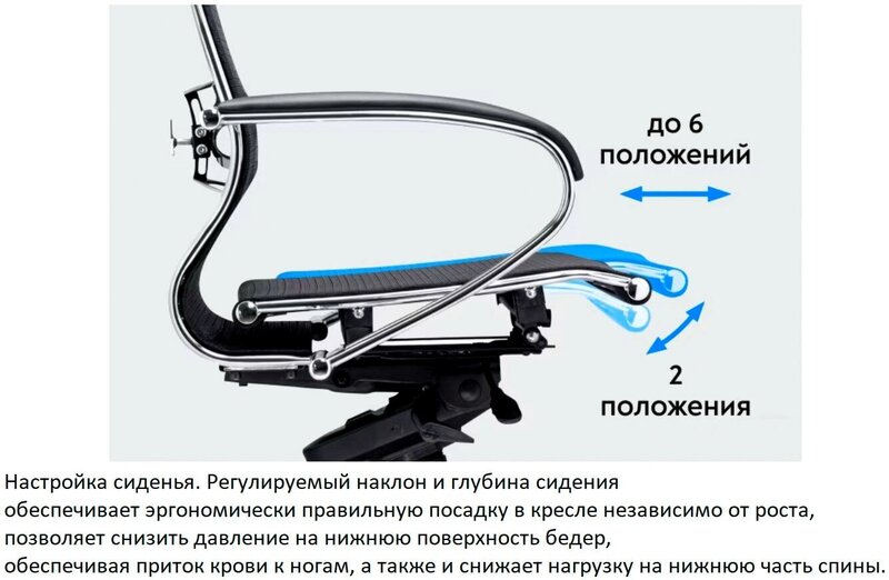 - высоты (газлифт), высоты сиденья (без спинки), глубины сиденья, жесткости качания, поясничной области