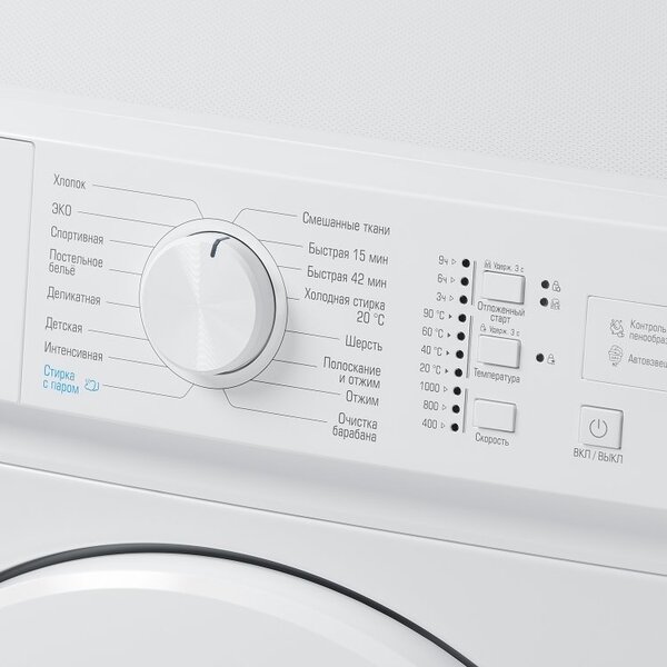 - Хлопок, Деликатная, Интенсивная, Смешанные ткани, Быстрая 42/15 мин, Холодная стирка 20°С, Отжим, Шерсть, Полоскание и отжим, Очистка барабана, ЭКО, Детская, Постельное белье, Спортивная, Стирка с паром
