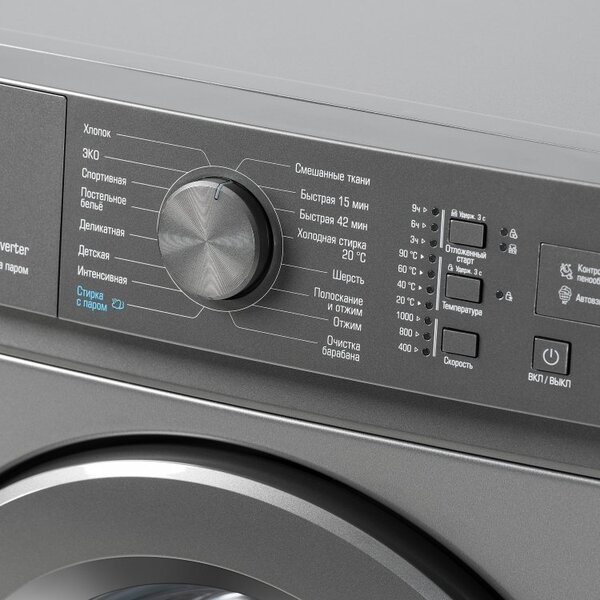 - Хлопок, Деликатная, Интенсивная, Смешанные ткани, Быстрая 42/15 мин, Холодная стирка 20°С, Отжим, Шерсть, Полоскание и отжим, Очистка барабана, ЭКО, Детская, Постельное белье, Спортивная, Стирка с паром