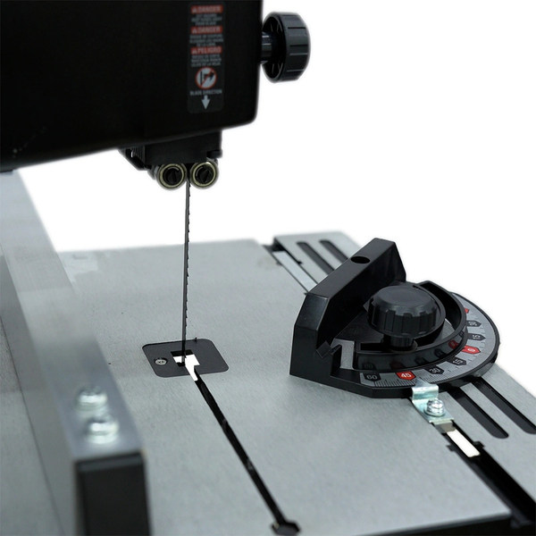 - Мощность двигателя 250 Вт Прочный литой алюминиевый стол с наклоном 0~45 град. Роликовые направляющие пильного полотна Быстрое натяжение пильного полотна Дополнительная светодиодная подсветка Усиленный боковой упор Транспортир