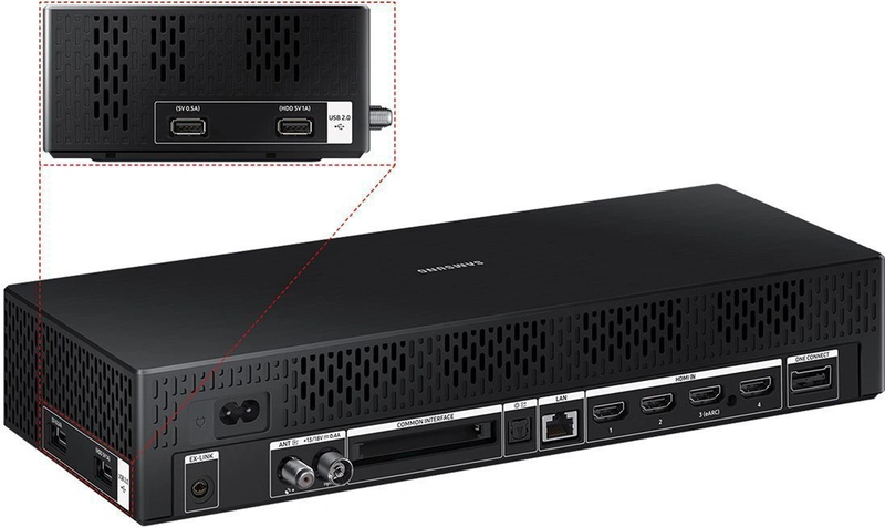 - Телевизор, пульт ДУ на солнечных элементах, боковые ножки, настенный кронштейн Slim Fit, кабель One Connect, внешний модуль One Connect, сетевой кабель, документация
