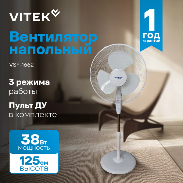 Вентилятор напольный Vitek VSF-1662 38Вт скоростей:3 ПДУ белый