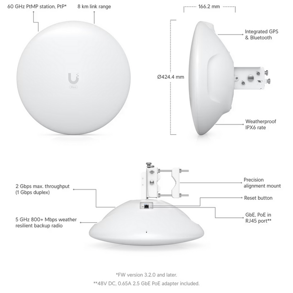 Точка доступа Wi-Fi Ubiquiti UISP Wave Long-Range Абонентское радиоустройство 60 ГГц (с резервированием 5 ГГц), UISP Wave Technology, 46 дБи купить в интернет-магазине TPShop.Ru. Наличный и безналичный расчет, розничные и оптовые продажи. Самовывоз, доставка по Москве и МО, отправка во все регионы России.