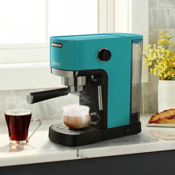 Кофеварка рожковая Kitfort КТ-7461 1350Вт бирюзовый/черный