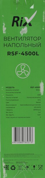 Вентилятор напольный RIX RSF-4500L 45Вт скоростей:3 ПДУ белый
