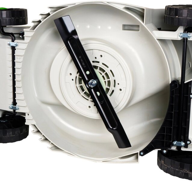 - защита от перегрузок, регулировка высоты скашивания, ручки для транспортировки, складная ручка