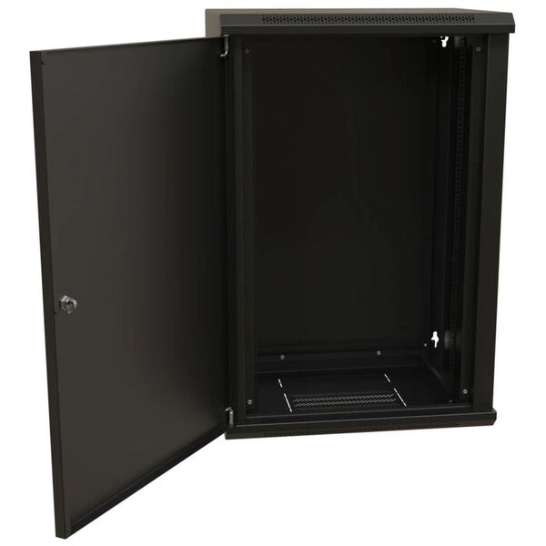Шкаф Hyperline WRline WR-TW-2245-SR-RAL9004 настенный 19-дюймовый (19"), 22U, 1086x600х450мм, цельнометаллическая дверь с замком, цвет черный (RAL9004) (разобранный) купить в интернет-магазине TPShop.Ru. Наличный и безналичный расчет, розничные и оптовые продажи. Самовывоз, доставка по Москве и МО, отправка во все регионы России.