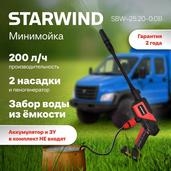 Минимойка Starwind SBW-25.20-0.0B 120Вт купить в интернет-магазине TPShop.Ru. Наличный и безналичный расчет, розничные и оптовые продажи. Самовывоз, доставка по Москве и МО, отправка во все регионы России.