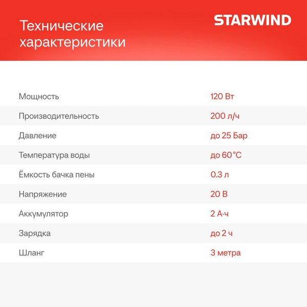 Минимойка Starwind SBW-25.20-0.0B 120Вт