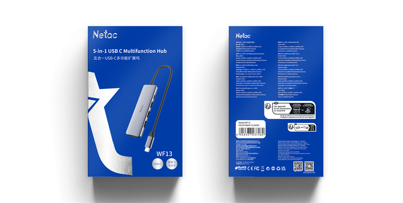 - Netac Hub WF13, Type-C to USB3.0+USB2.0*2+100W PD+HDMI (repl. NT08WF13-30GR)