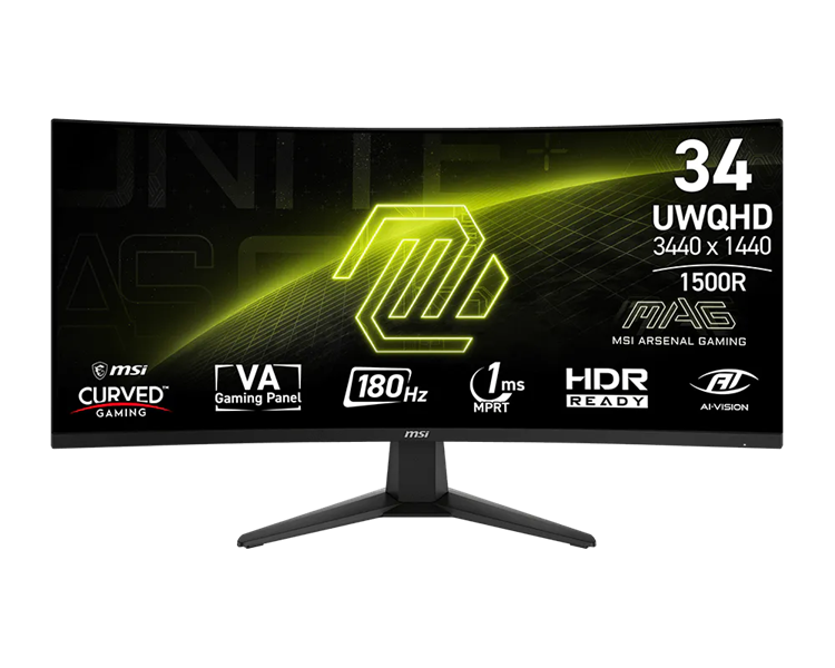 Монитор Монитор MSI 34" MAG 346CQ 1500R, Black, 21:9, VA, UWQHD, 1ms, 180Hz, 300cd, HDMI, DP