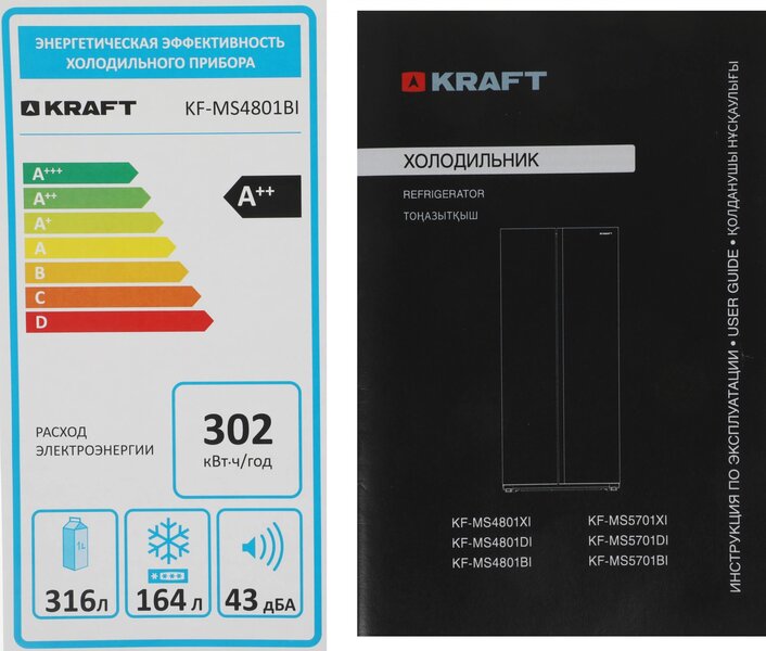 Холодильник Kraft KF-MS4801BI 2-хкамерн. черный инвертер