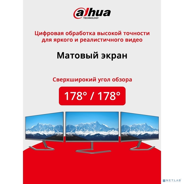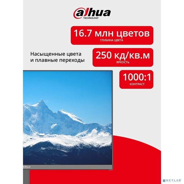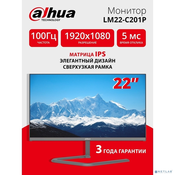 Монитор Dahua DHI-LM22-C201P 21.55"(16:9) FullHD монитор Тип матрицы: IPS. ELED подсветка,1920x1080,250 кд/м2,1000:1, 178°/178°, 5 мс,100Гц, Цвет: 16.7Млн (8 бит). VGAx1, HDMIx1, Аудио выход1