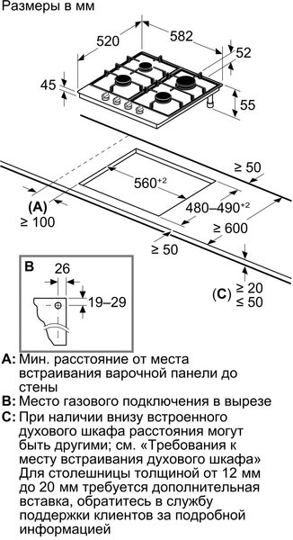 - Размеры для встраивания