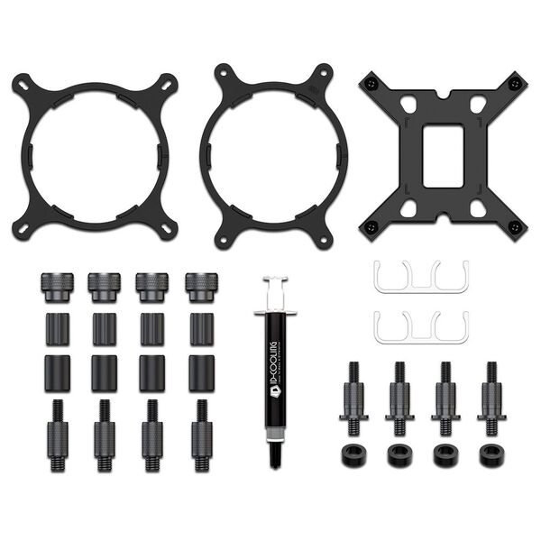 - СЖО, 2 вентилятора, крепежный комплект, разветвитель питания вентиляторов, термопаста, документация