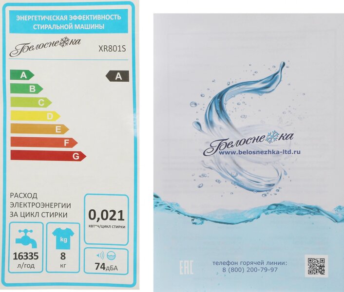 Стиральная машина Стиральная машина Белоснежка XR801S класс: A загр.вертикальная макс.:8кг белый