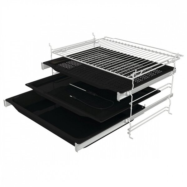 - Мелкий эмалированный противень, Глубокий эмалированный противень, 1 перфорированный эмалированный противень. Решетка.