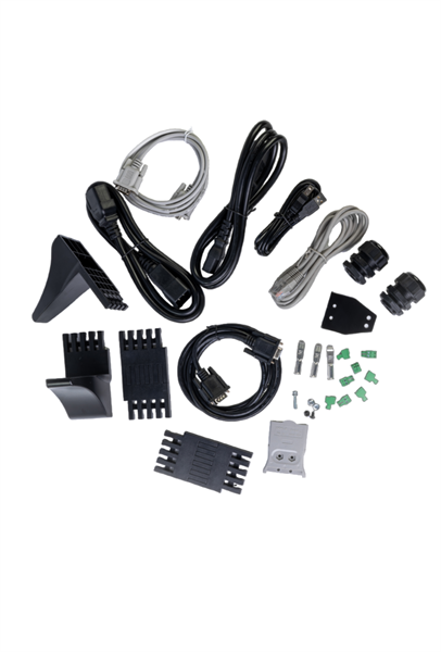 - ИБП, руководство пользователя, USB-кабель, RS-232 кабель (1.5 м), RS-485 кабель, устойчивые ножки и расширители для установки на пол, кабель для параллельного подключения, монтажные уши и винты, кабель C13-C14 (1 шт.), кабель C19-C20 (1 шт.)