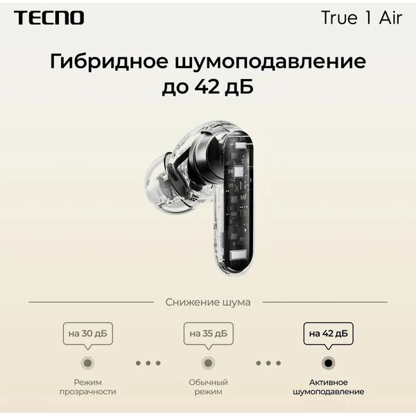 Наушники Tecno True 1 Air TU01 кремовый беспроводные bluetooth TU01 AIR CREAMY WHITE