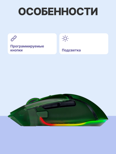 Игровая мышь Razer Basilisk V3 Pro 35K - Phantom Green Ed. Mouse/ Razer Basilisk V3 Pro 35K - Phantom Green Ed. купить в интернет-магазине TPShop.Ru. Наличный и безналичный расчет, розничные и оптовые продажи. Самовывоз, доставка по Москве и МО, отправка во все регионы России.