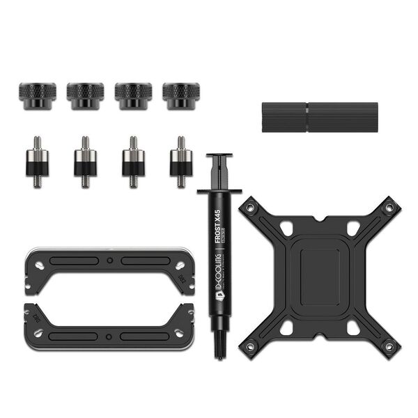 - СЖО (в сборе), документация, крепежный комплект (винты, прижимная пластина), комплект кабелей, термопаста