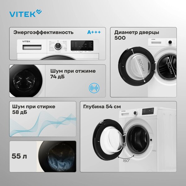 Стиральная машина Vitek VT-WME8201 класс: A+++ загр.фронтальная макс.:8кг белый инвертор