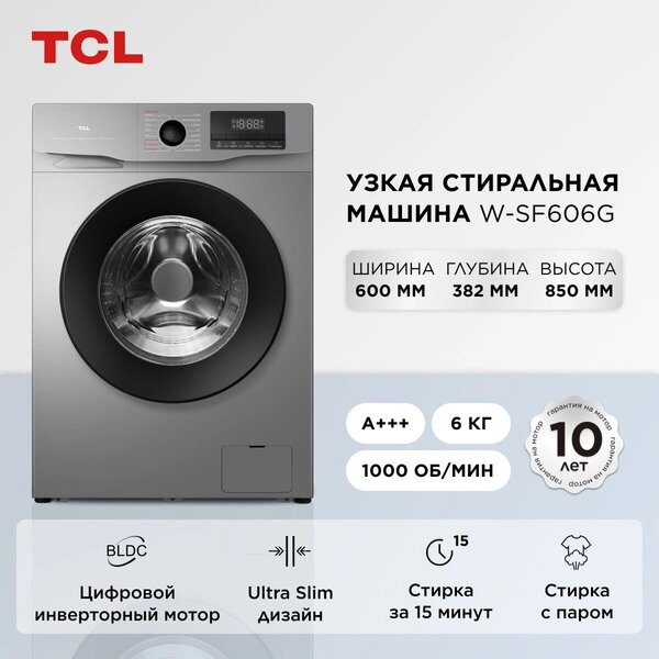 Стиральная машина TCL W-SF606G с паром класс: A+++ загр.фронтальная макс.:6кг серый инвертор купить в интернет-магазине TPShop.Ru. Наличный и безналичный расчет, розничные и оптовые продажи. Самовывоз, доставка по Москве и МО, отправка во все регионы России.
