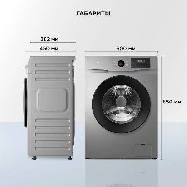 Стиральная машина TCL W-SF606G с паром класс: A+++ загр.фронтальная макс.:6кг серый инвертор