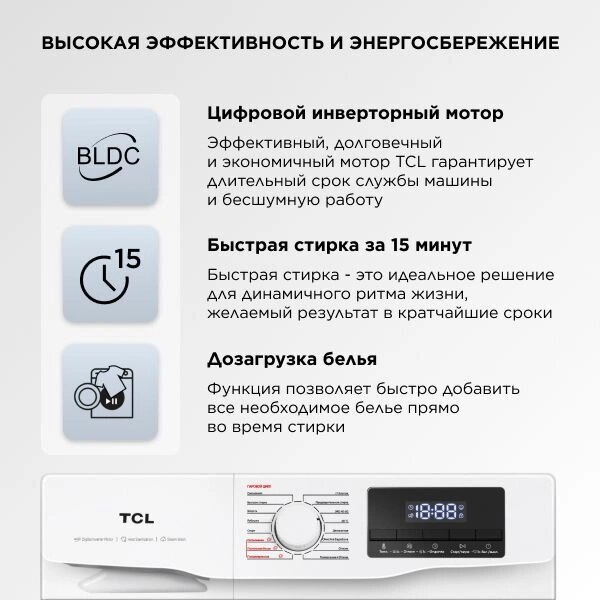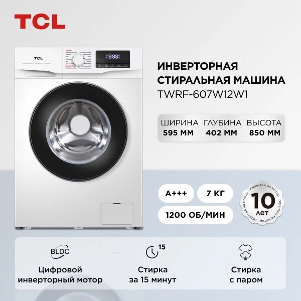 Стиральная машина TCL TWRF-607W12W1 класс: A+++ загр.фронтальная макс.:7кг белый инвертор