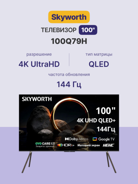 Телевизор Телевизор QLED Skyworth 100" 100Q79H MaxScreen TV Frameless черный/коричневый 4K Ultra HD 144Hz MEMC DVB-T DVB-T2 DVB-C DVB-S DVB-S2 USB WiFi Smart TV купить в интернет-магазине TPShop.Ru. Наличный и безналичный расчет, розничные и оптовые продажи. Самовывоз, доставка по Москве и МО, отправка во все регионы России.