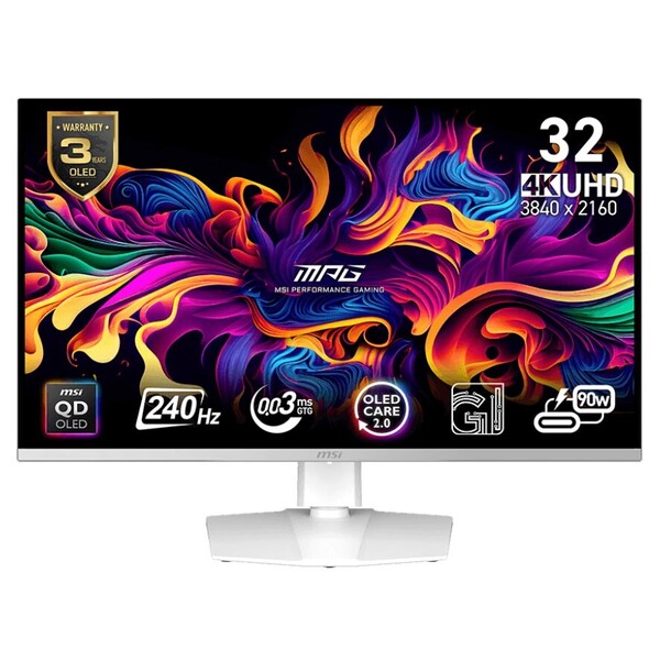 Монитор Монитор 31.5" MSI MPG 321URXW QD-OLED White (QD-OLED, 3840x2160, HDMI+HDMI+DP+Type C (90W), USB Hub, 0.03 ms, 178°/178°, 250 cd/m, 1500000:1, 240Hz, Pivot)