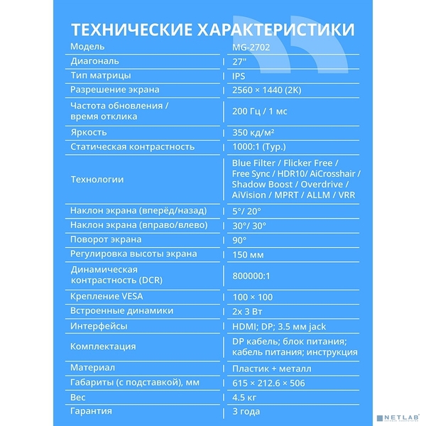 Монитор CBR LCD Монитор 27" MG-2702, IPS, QHD 2K 2560x1440, 200Гц [LCD-MG2702-OPC] купить в интернет-магазине TPShop.Ru. Наличный и безналичный расчет, розничные и оптовые продажи. Самовывоз, доставка по Москве и МО, отправка во все регионы России.