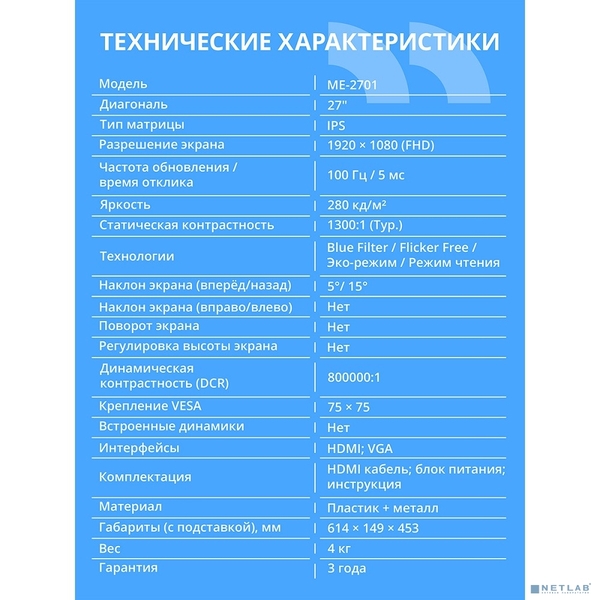 Монитор CBR LCD Монитор 27" ME-2701, IPS, FHD 1920x1080, 100Гц [LCD-ME2701-OPC] купить в интернет-магазине TPShop.Ru. Наличный и безналичный расчет, розничные и оптовые продажи. Самовывоз, доставка по Москве и МО, отправка во все регионы России.